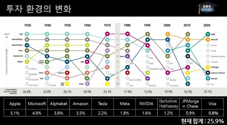 ●투자환경 변화-세상 변화에 따라 시가총액 순위도 달라지죠.변화가 빠른 만큼 영원한 1인자는 없네요.
