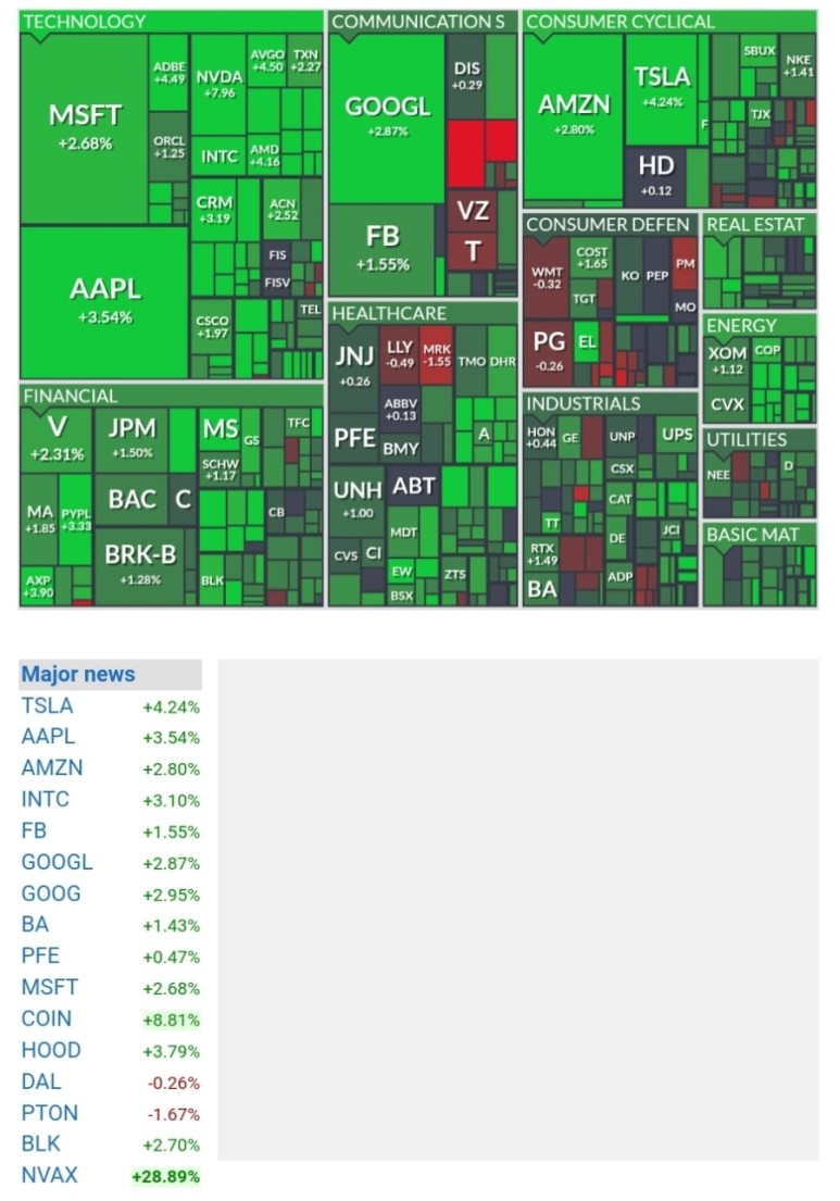 정보기술 +3.51%, 자유소비 +2.36%, 에너지 +2.28%, 금융 +1.80%, 부동산 +1.75%, 소재 +1.51%, 커뮤니케이션 +1.30%, 헬스케어 +1.25%, 산업재 +1.03%, 유틸리티 +0.75%, 필수소비 +0.23%