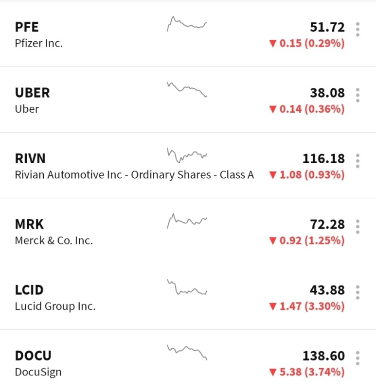 ● 루시드, 리비의 가운데 우보, 도큐 사인, 화이자, 마크의 하락