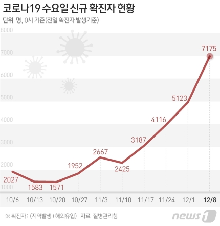 ●신종 코로나바이러스 감염증 확진자 수는 역대 최다인 7000명