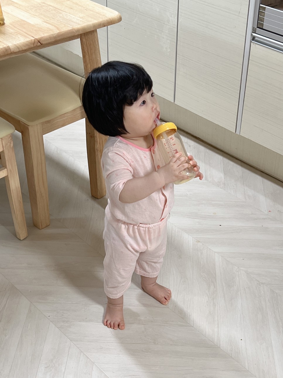 몸에 힘이 없어 일어서려 하자 엉덩방아를 찧고 웃으며 아장아장 걷던 아기는 어디론가 가만히 앉은 상태로 나만 바라봤습니다. 지금까지 아픈건 처음이라 얼마나 마음이 아팠는지 눈물이 났어요 ㅠㅠ 이때부터 느끼기 시작했어요. 아 돌칠레가 왔구나.