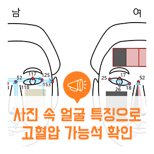 한국한의학연구원(이하 한의학연구원) 이상훈 박사 연구팀은 사진 속 얼굴색, 얼굴형 등 얼굴의 특성을 분석해 고혈압 환자와 정상인을 구별할 수 있다는 연구 결과를 발표했다. 앞으로 사회관계망서비스(SNS)와 휴대전화 사진 등을 활용해 일상에서의 건강 위험을 사전에 파악하고 관리하는 미래 헬스케어 기술 개발에 활용할 수 있을 것으로 기대된다.