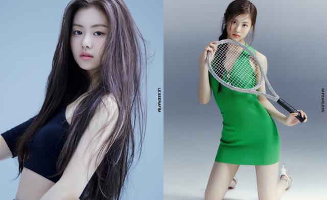 소속사는 SourceMusic 로고이며 소속그룹은 LESERAFIM 로고입니다.데뷔는 2022년 LESERAFIM 1집 TBA입니다 (데뷔일로부터 -일, 0주년)