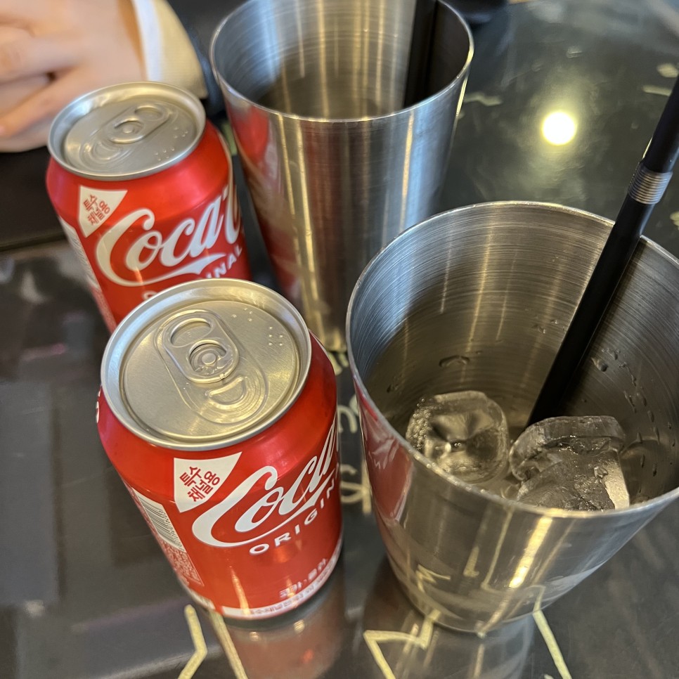 콜라는 얼음잔과 함께 제공됩니다.