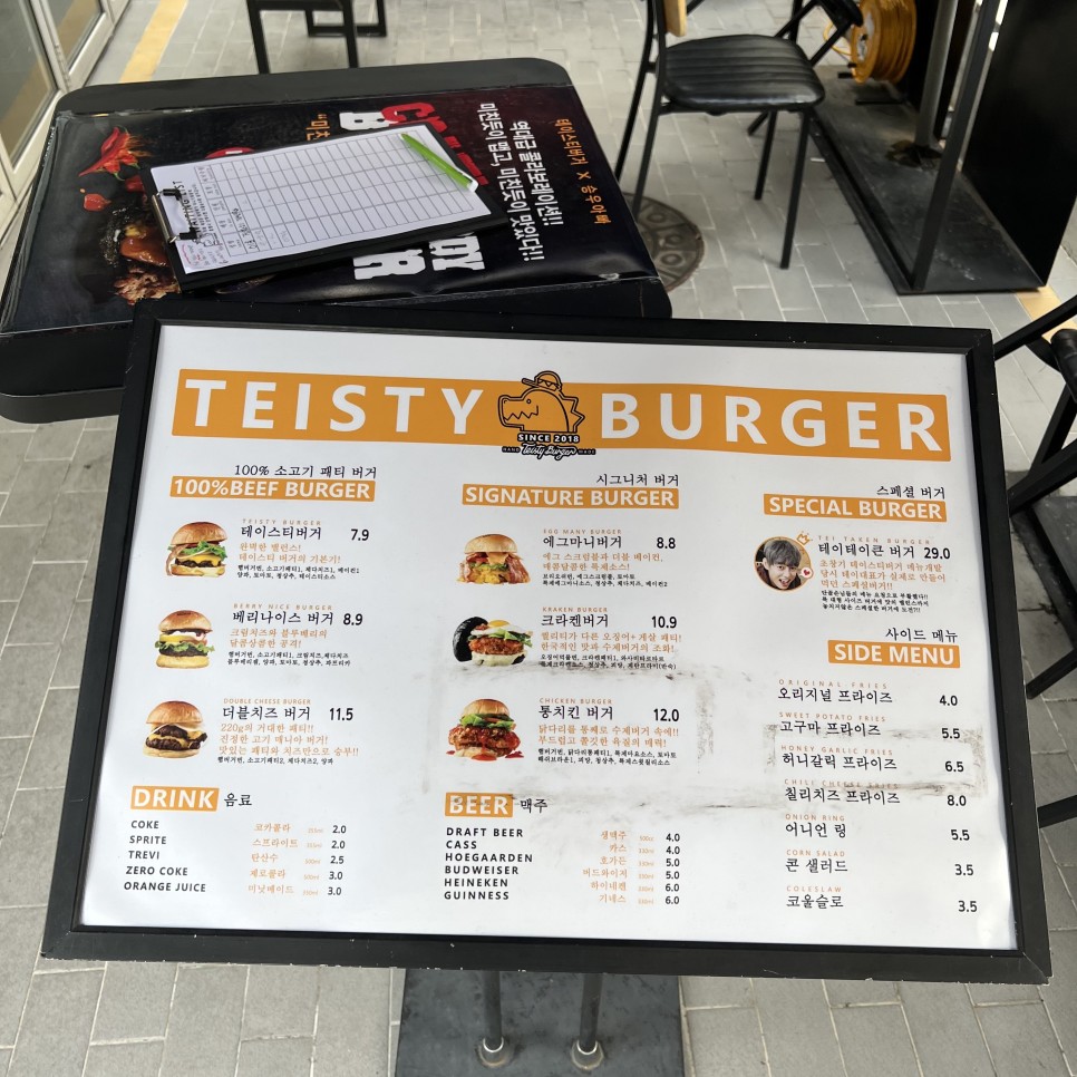 테이스티버가 메뉴입니다.