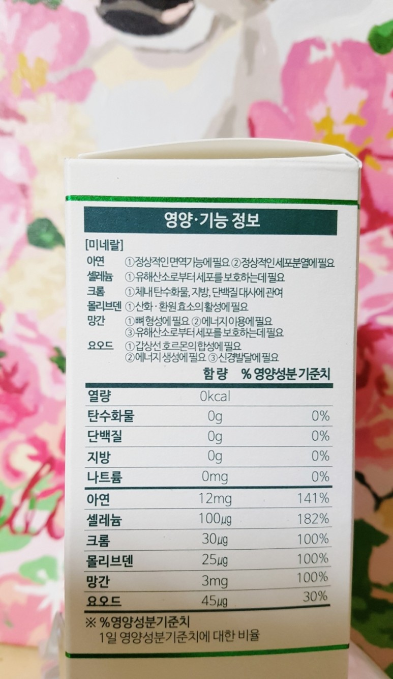 영롱멜라티온 미네랄을 선택하는 계기로 먼저 본 오드, 셀레늄, 글루타치온 3가지가 모두 들어있는 영양제이기 때문입니다^^