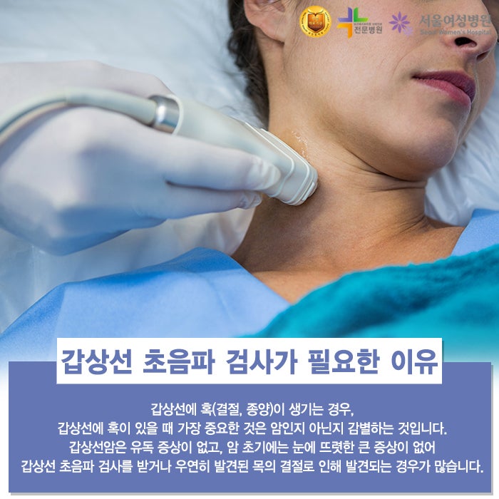 흔한 만큼 위험도 떨어지기 때문에 진단을 받았다고 해서 너무 걱정할 필요는 없습니다. 갑상선암의 진단을 위해 가장 중요한 검사는 갑상선 초음파 검사입니다.