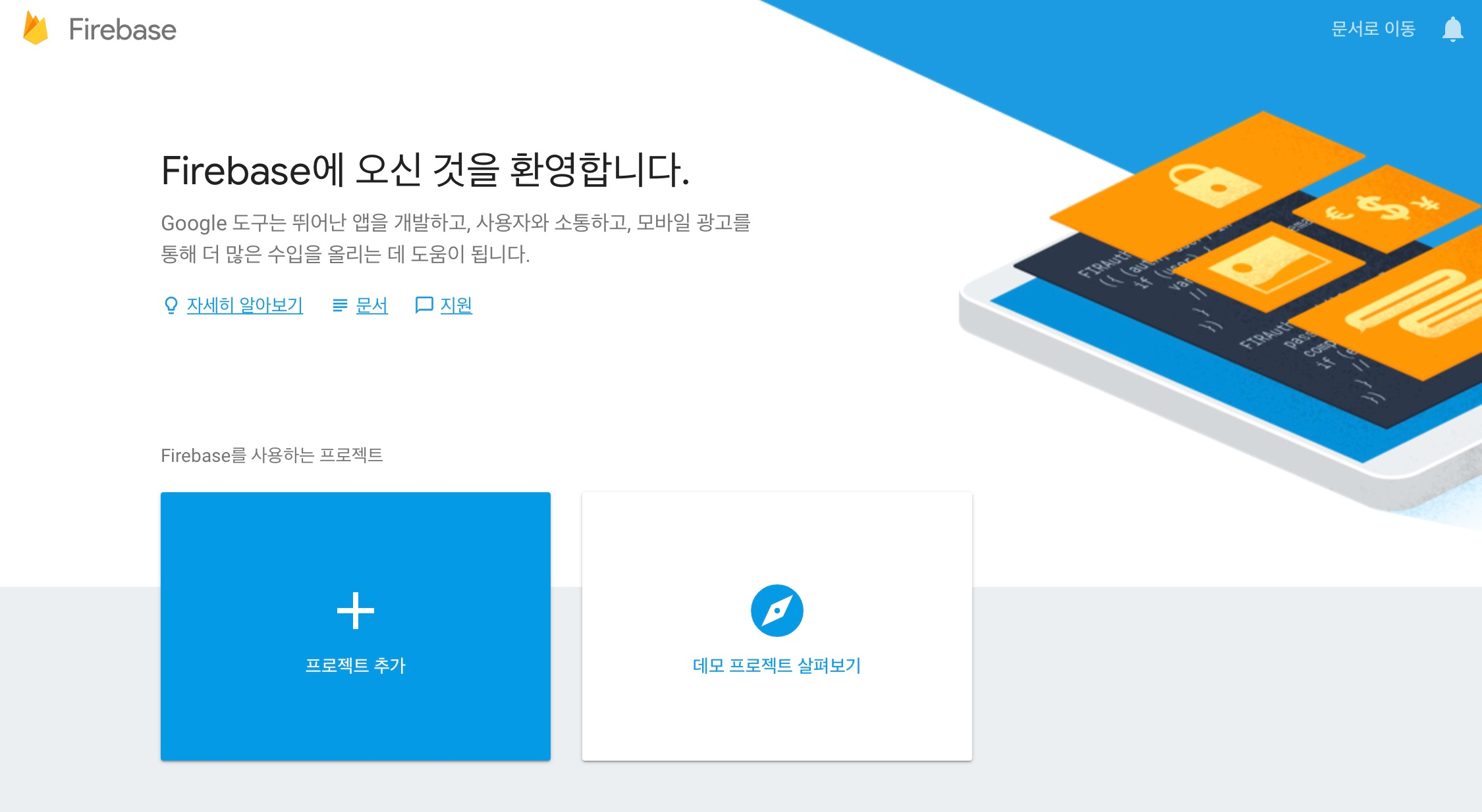 https://console.firebase.google.com/u/0/에 접속하여 프로젝트를 작성합니다.
