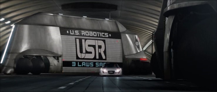 완전 자율주행 컨테이너 트랙 (아이로봇, 2004 개봉작)