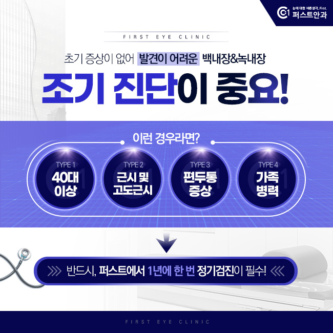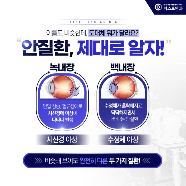 고령화 시대에 접어들면서 점차 안구질환으로 인해 안과를 찾는 사람이 늘고 있는 요즘 백내장과 녹내장의 초기 증상과 치료 과정에 대해 퍼스트안과와 함께 알아보겠습니다.