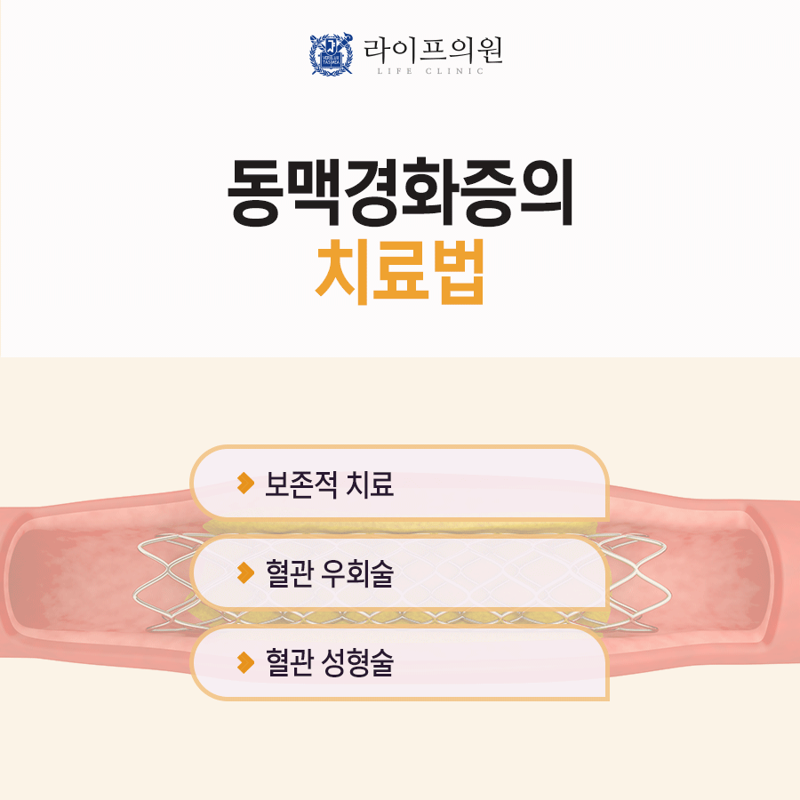 동맥경화증의 치료법 = 일반적으로 동맥경화가 상당히 진행된 경우 좁아진 혈관을 다시 확장시키는 혈관성형술과 같은 시술을 하거나 심해진 경우에는 다른 혈관을 잘라 막힌 곳을 우회하여 연결하는 혈관 우회술이라고 합니다. 수술이나 시술 정도가 아닌 동맥경화의 경우는 특히 치료법이 일반적으로는 없는 것으로 알려져 있습니다. 그러나 최근 이와 같이 심하지 않은 동맥경화도 호전시키는 치료법이 시도되면서 적극적으로 치료하는 사람들이 늘고 있습니다. 심혈관질환을 전문으로 하는 본원에서도 장비와 치료약제로서 이러한 동맥경화를 치료하여 많은 좋은 사례가 축적되고 있습니다.서울특별시 강남구 남부순환로351길 4 STAY77 1층