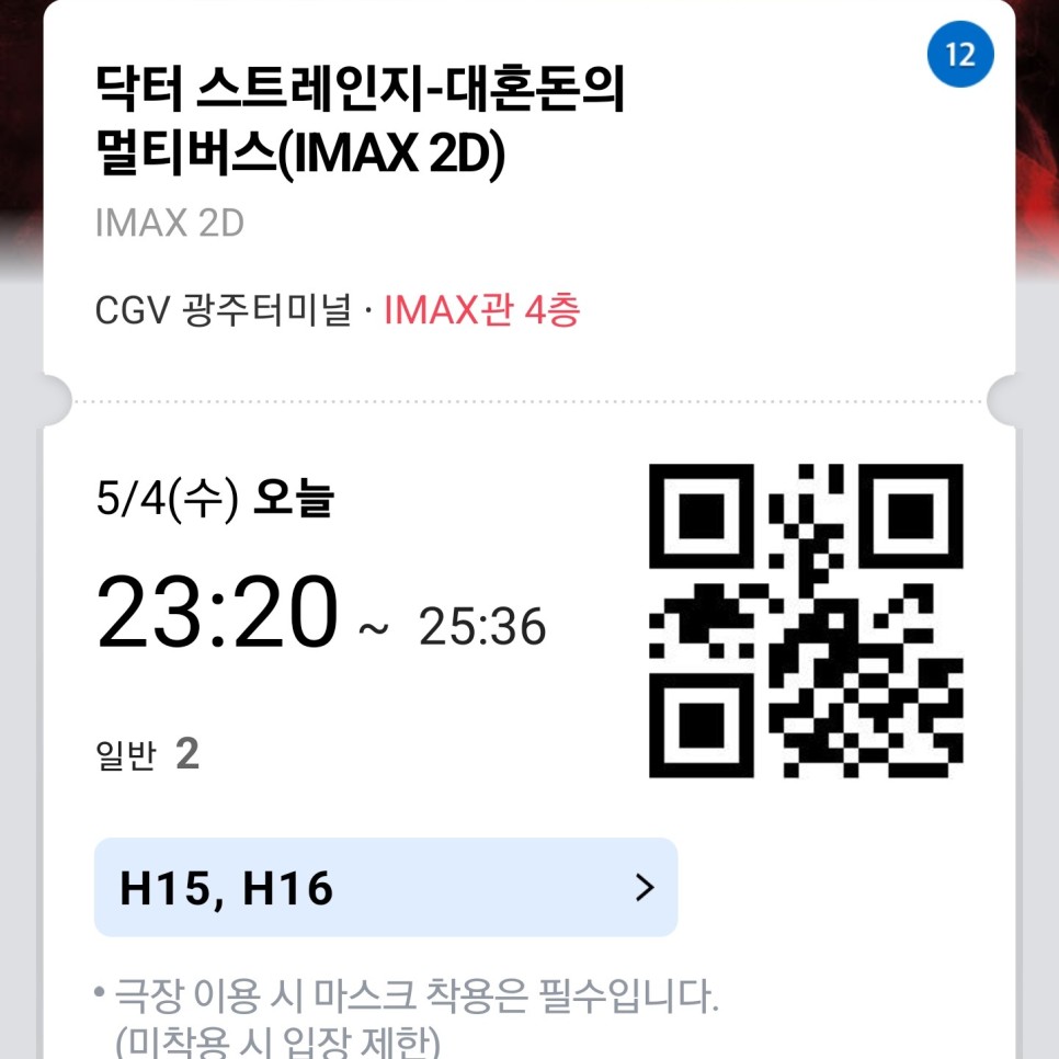 마블영화는 꼭 아이맥스로 봐야지! 광주에 아이맥스가 있어서 좋았어. 깜빡하다가 예매가 오픈된 날 오후에 들어갔더니 가운데 자리로 보기에는 저녁 11시 20분 www 그래도 H열 가운데 자리로 예약했다. 근데 나중에 보니까 새벽 2시 상영표도 있더라.