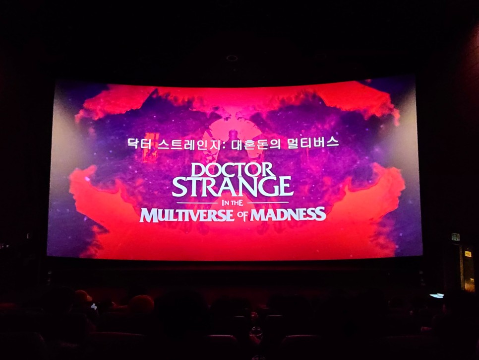 밤 11시가 넘은 시간 닥터 스트레인지를 보러 온 사람들, 함께 나란히 입장했다. 오랜만에 영화관에 사람이 많고 팝콘 냄새도 나니까 코로나 이전으로 돌아간 느낌이었다. 나는 수자랑 집에서 가져온 무알코올 맥주를 한 병씩 마시며 영화를 봤다.