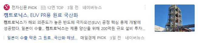 일본과 중국 등에서 수입해 온 반도체의 극자외선(EUV) 공정의 핵심 용제 개발에 성공했다는 소식이 나왔습니다.