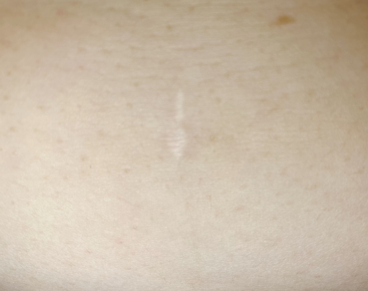 - 그래도 수술해보니 너무 기뻐요!수술 상처도 거의 눈에 띄지 않아요!복부 위쪽에 있는 자국이에요.길이는 손톱 정도입니다.작네요~이런자국이세개에요~(배꼽부분,윗쪽,옆쪽)