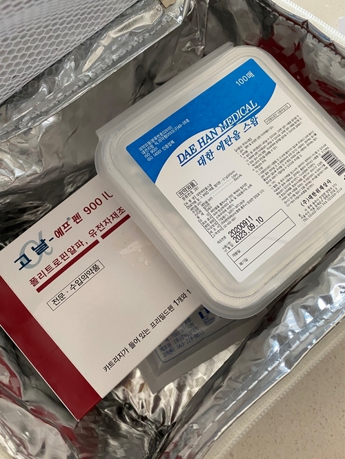 주사실의 간호사에게 주사기를 맞고 배에 주사하는 방법 등 여러 가지 설명을 듣습니다.아이스박스에 주사기와 알코올 솜을 준비해 주었습니다.이 아이스박스를 들고 (갑상선 검사를 위해) 내과에 내려 대기하고 있는데 가방을 들고 계신 분이 꽤 있었어요. 전에는 몰랐지만 T 우리 모두 건강한 임신에 성공하길 빌어요!!