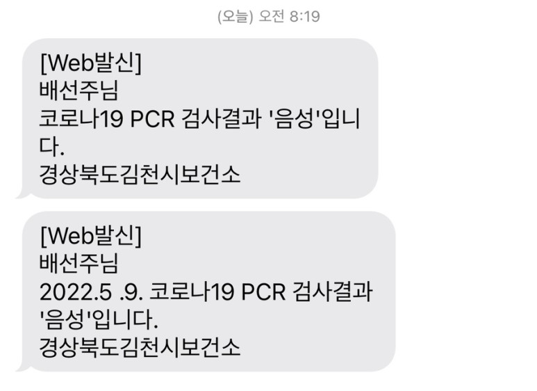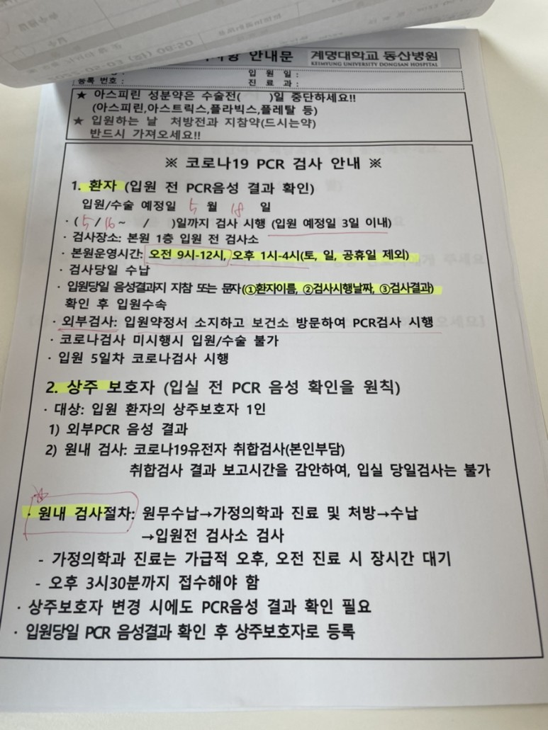 입원 3일 전 보건소에서 코로나 검사를 하다