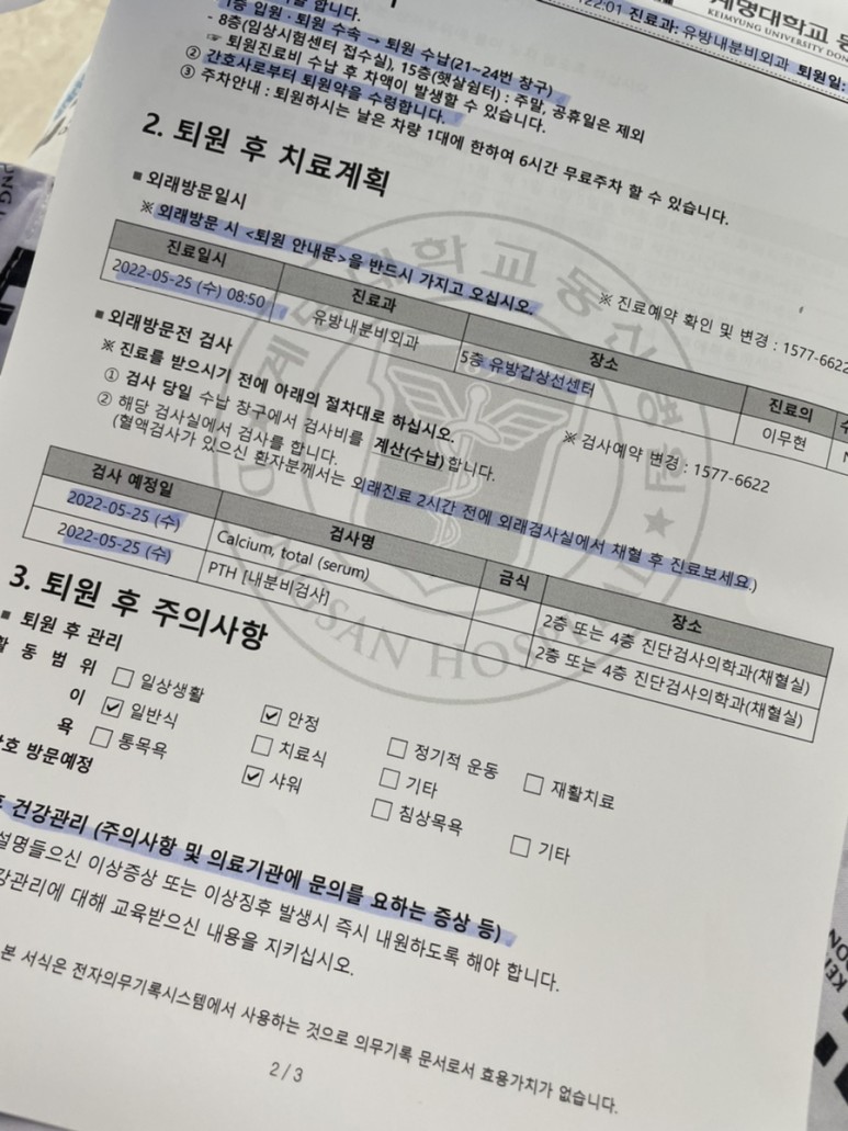 이날도 양이 너무 애매해서 하루 더 지켜보기로 했다.결국 6박 7일 만에 퇴원했다