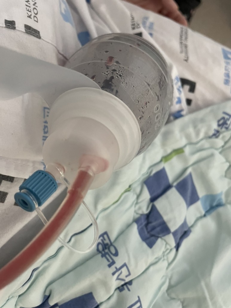 양팔은 멍이 들었고 매일 퇴원을 기대하며 회진하는 교수를 만났다.교수님이 웃으면서 집에 빨리 가고 싶으면 배액관을 끼고 집에 가도 된다고 하셨다.
