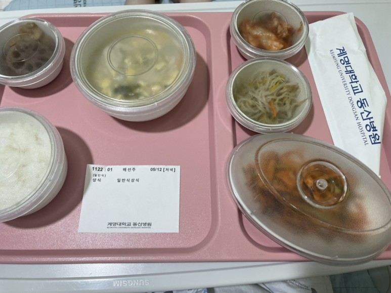 병원의 밥은 일반식이라 특별식이 있지만 매일 골라 먹을 수 있다.교수님이 일반식 먹어도 된다고 하셔서 입원하는 동안 맛있는 밥을 먹었다.