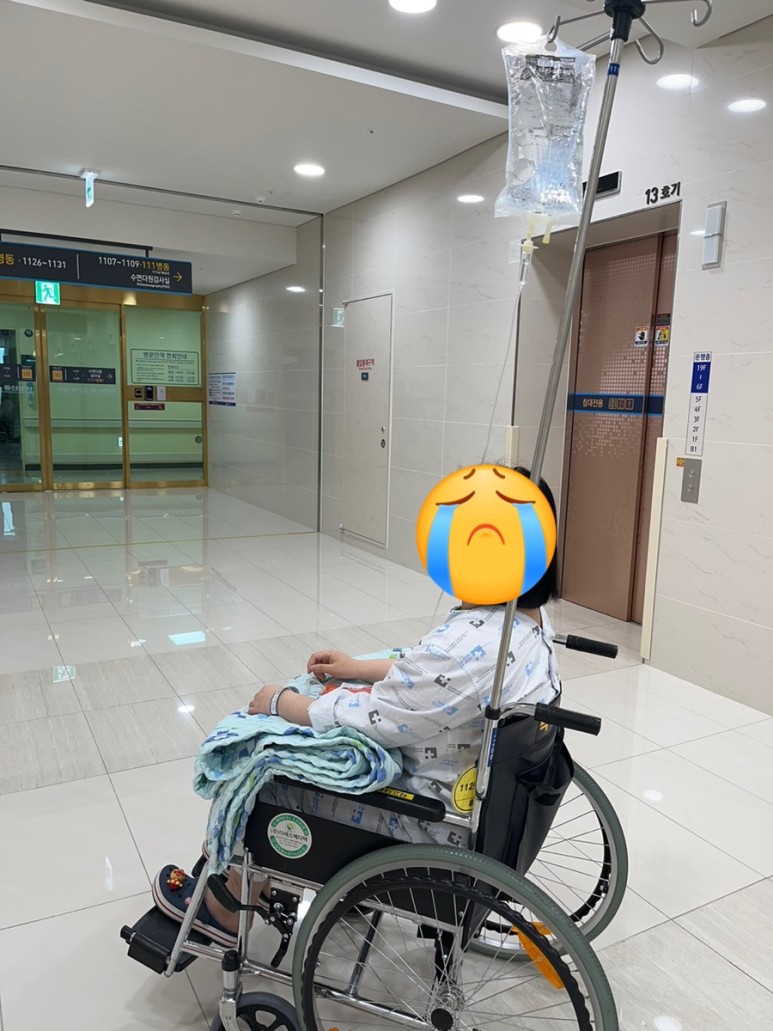 5인실이었고 화장실 바로 옆자리였다.은근히 넓어서 냉장고가 개인으로 되어있어서 편했어!사실 동네 병원에 많이 입원했지만 대학병원은 처음이었다.침대가 자동이라 정말 편했어.(침대최고)