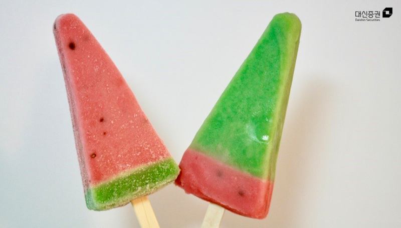 빨간 부분에 수박씨 같은 게 있어서 씹는 식감이 좋더라고요초록색 부분은 수박바를 먹을 때보다 싱거운 맛이 났어요.그래서 수박바가 더 좋을 것 같아요.