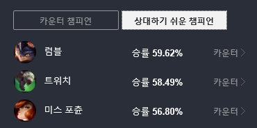 상대하기 쉬운 챔피언 램블 트위치 미스 포천