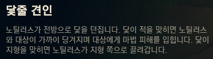 닻줄 건의 Q 전방에 닻을 던진다.지형에 맞춰도 지형에 노틸러스가 당겨진다.이니셜을 걸거나 도주하는 데 용이하다