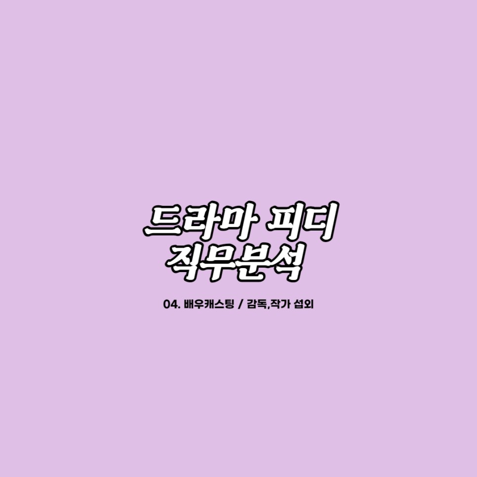 특히 지금 현재 들어가는 작품이 많아서 캐스팅이라든가 감독님, 작가 섭외를 많이 하니까(물론 내가 직접 하는 일은 절대 없다), 할 수 있는 얘기가 많다고 생각한다.드라마 작가, 감독은 어떻게 섭외할까.