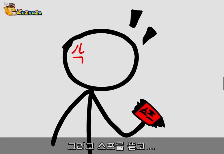 드디어 가계에 들어가 자신이 먹고 싶은 신라면을 사게 되었습니다. 이제 끊기만 하면 되는데 주인공의 스킬 파괴 광선을 발사해서 끓여 먹으려고 하네요. 그리고 지금 음식은 어떤 것을 비유하는지 여러분은 잘 알고 있죠.