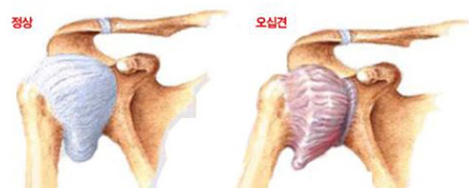어깨 관절에는 관절의 움직임을 부드럽게 움직일 수 있는 관절 주머니(관절 주머니)가 있습니다. 이 관절낭이 두꺼워지면서 수축되어 운동 제한이나 어깨 통증이 발생하는 질환을 오십견 또는 유착성 관절낭염이라고 합니다. 50대에 많이 발생한다고 해서 오십견이라고 불리고 있습니다만, 40대의 젊은 연령에서도 많이 발생합니다.