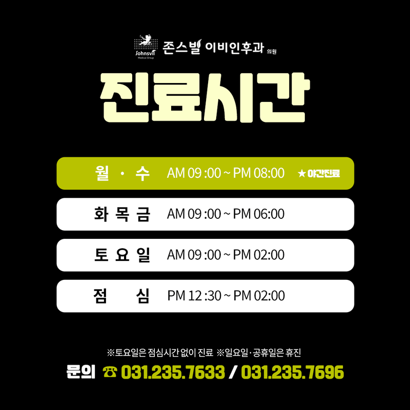 마지막으로 코 질환과 관련된 증상이 나타나면 존스빌 이비인후과를 방문하여 적절한 진단을 받아보시기 바랍니다.