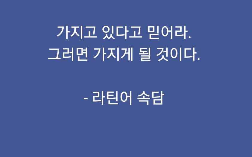 가지고 있다고 믿어라. 그렇게 하면 갖게 되겠지. -라틴어 속담