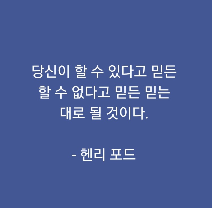 할 수 있다고 믿거나 말거나 믿게 되겠지. – 헨리 포드