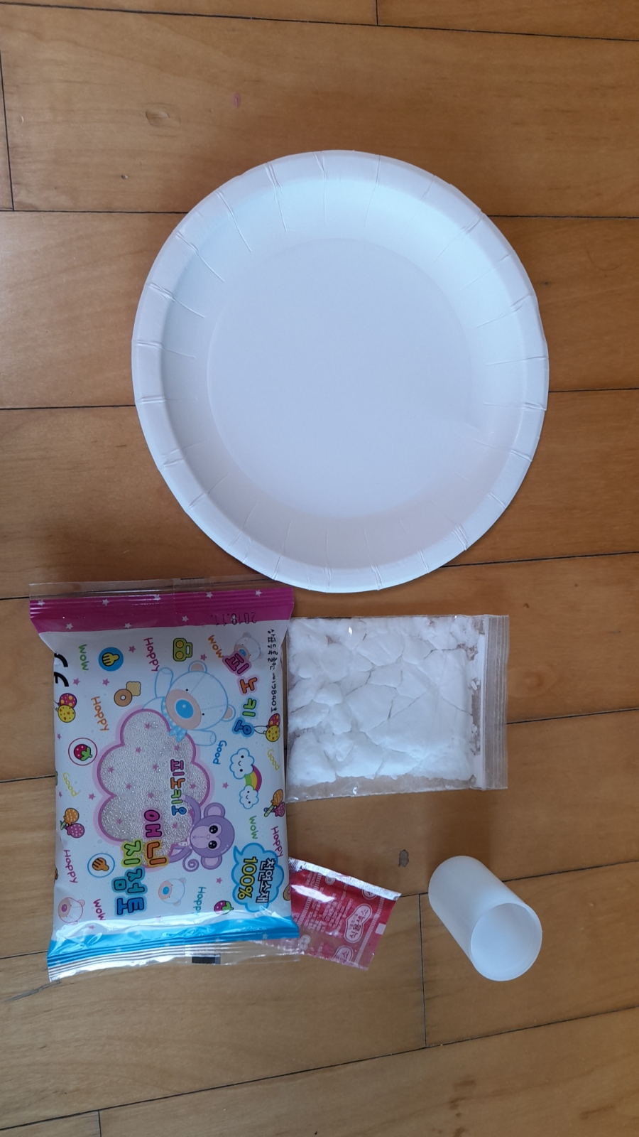 준비물)♡점토♡필름 넣기♡일회용 플라스틱 접시♡식용 색소♡탄산 수소 나트륨♡식초♡연필
