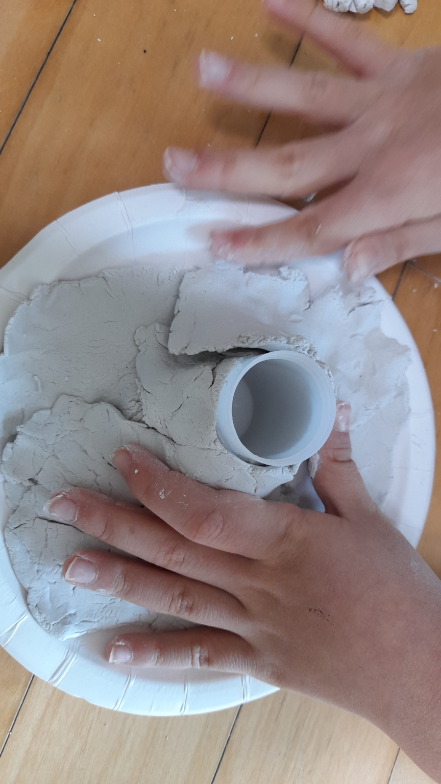 - 필름통 주위에 점토를 쌓아 화산모형을 만듭니다.