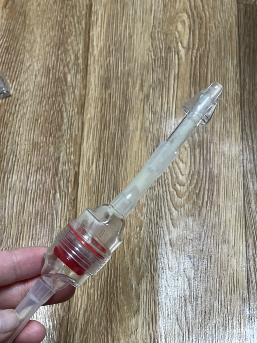 사진에서 보시는 것처럼 끈적끈적하고 아기의 노란 콧물을 뺄 때 아주 효과적이고 중간에 코 거름막이 있어 세정케어도 편해요~