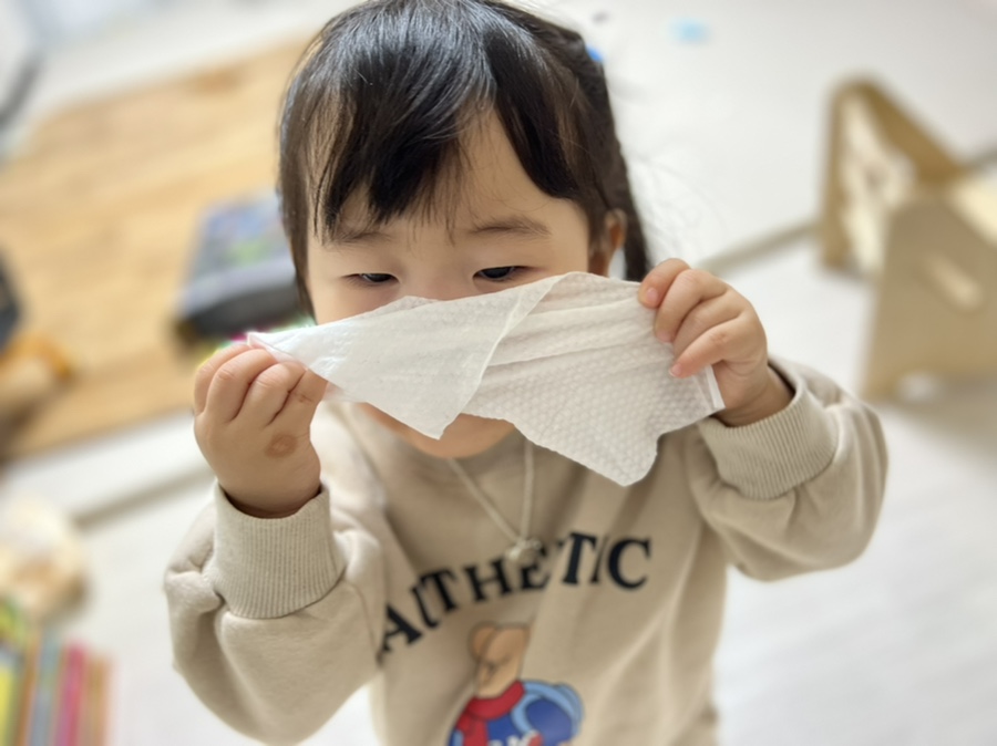처음에는 계속 울기만 한다더니 지금은 아기의 콧물이 많아서 힘들면 마음대로 가져와서 “코코”하고 내세요.