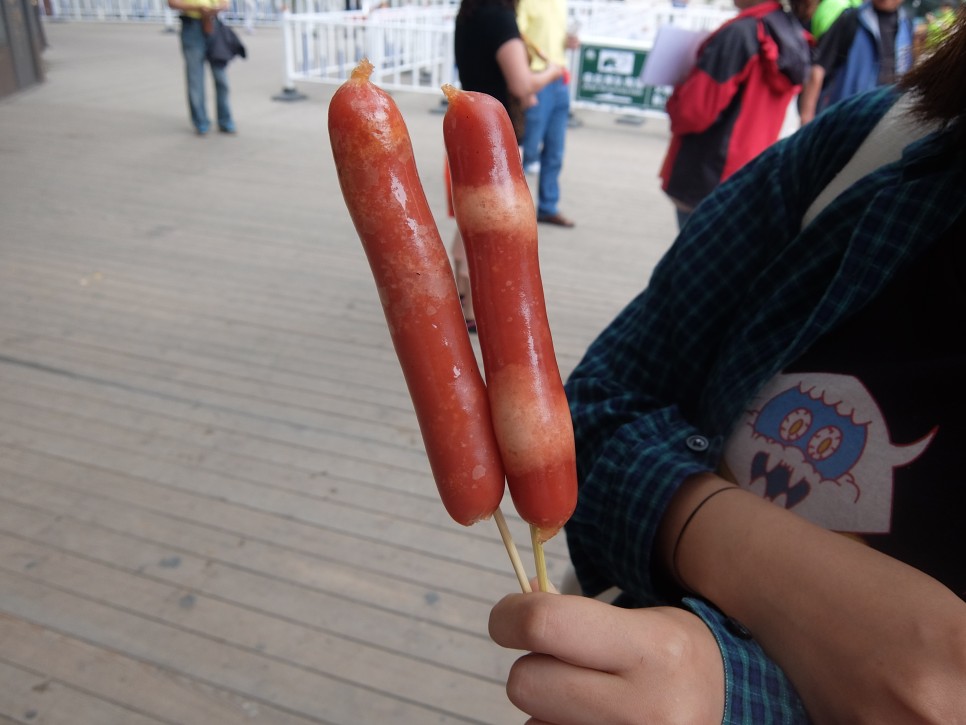 케이블카에서 내리자마자 놀란 가슴 소시지로 달래봤어요역시 맛있네.