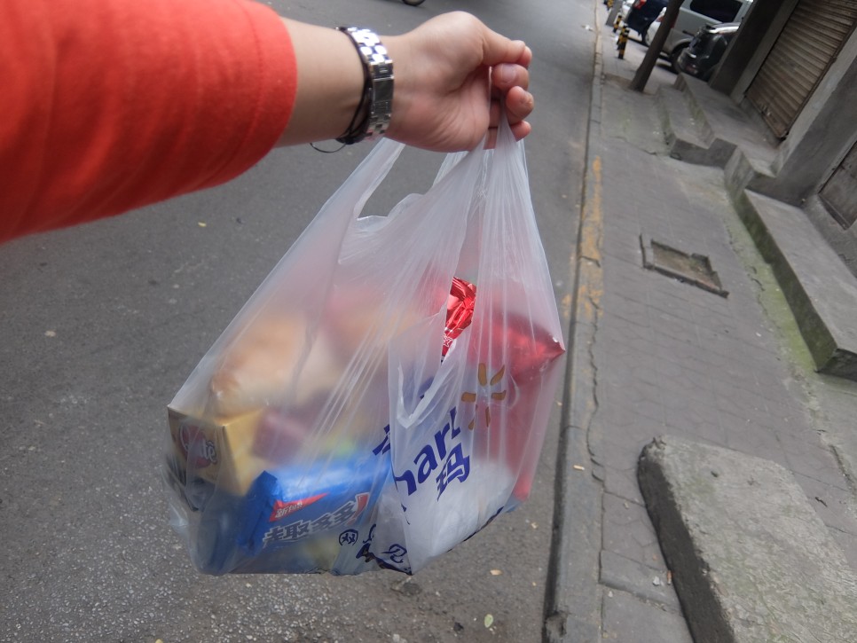 기차에서 중국인처럼 탁상 먹어야 한다고 과자 한 꾸러미를 가져간다.
