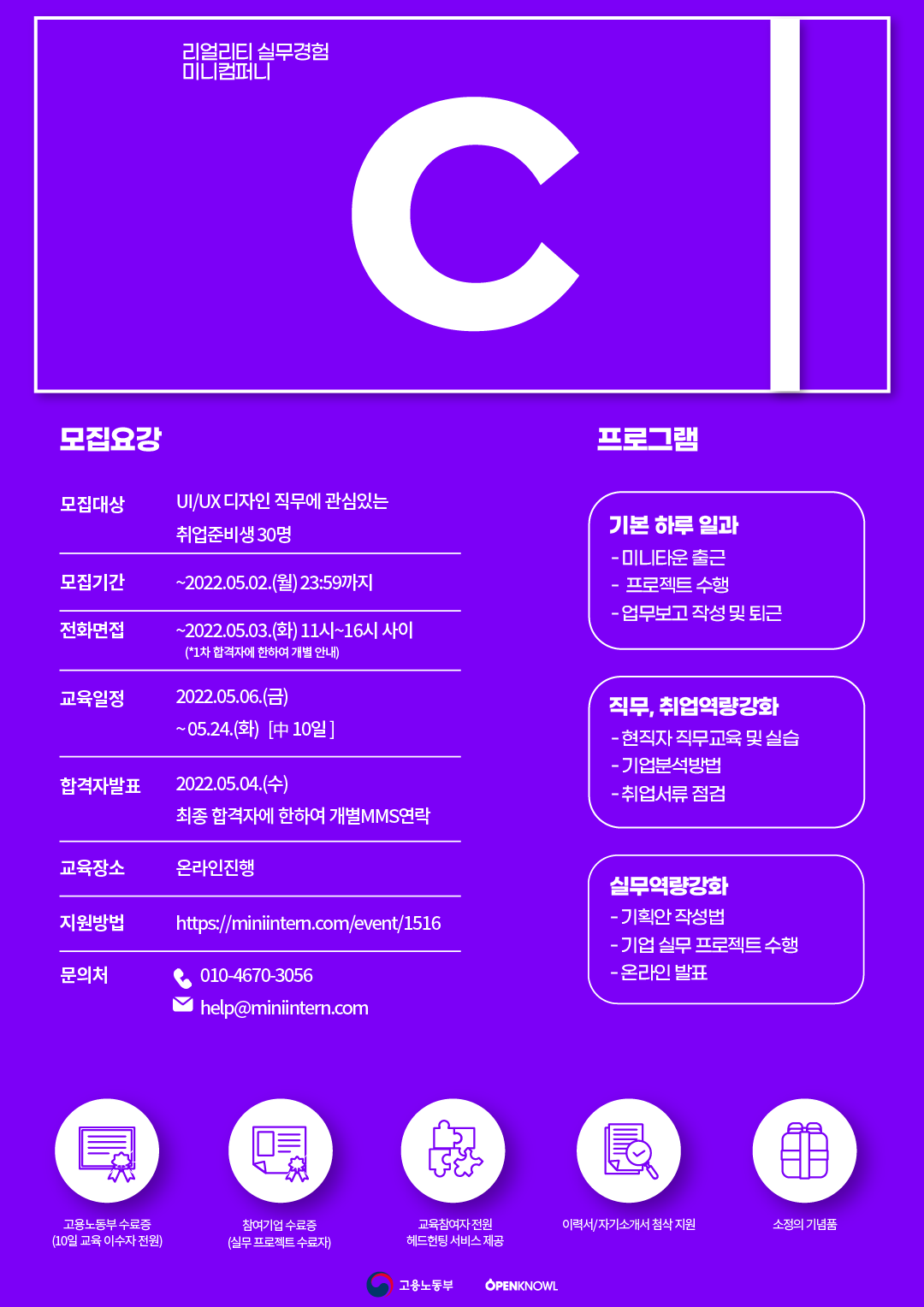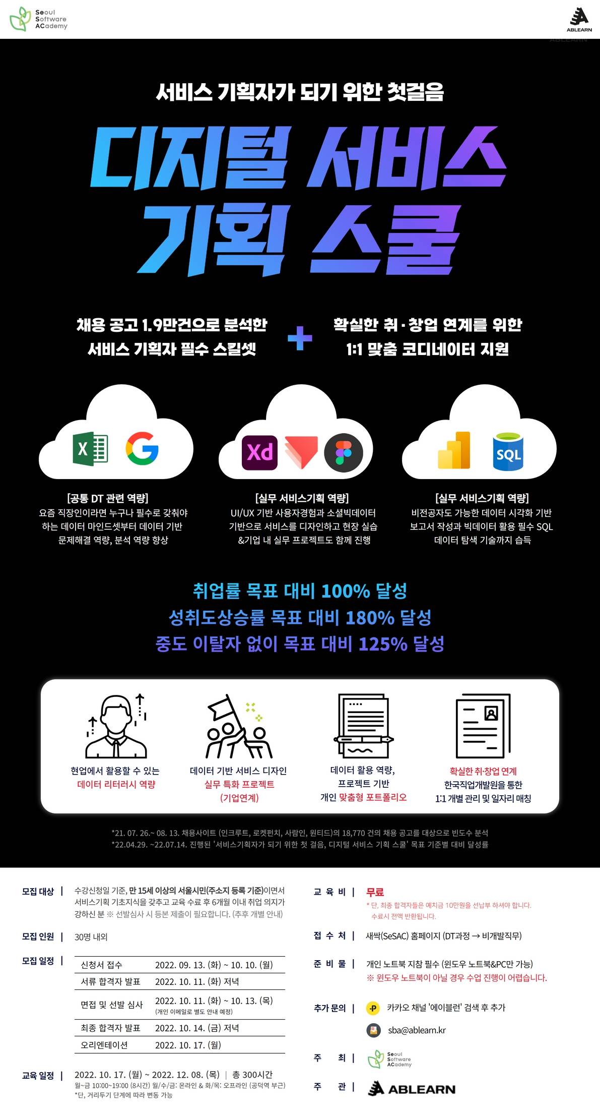 구분기관명 과정명 주요 활용도구 모집일정 교육일정 교육시간 1. 서비스기획 에이블런 서비스 기획자를 위한 디지털 고객경험(DCX) 스쿨 Figma, Tableau, 엑셀 VBA’21.11.19~12.03’21.12.13~’22.02.102.220시간2.UI/UX기획 패스트캠퍼스 Megabyte School:UX/UI 디자인 Figma’21.11.15~11.18’21.06~’22.09 298시간3. 퍼블리싱 전문 컨설팅 기업 연계형, 프론트엔드, JHTPS Query, JExpubery, Jexpub※ 모집일정 및 교육일정은 각 과정별로 상이합니다.서비스 기획, UI/UX 디자인, 퍼블리싱, 디지털 마케팅 등 무료 교육에 취업 연계까지?