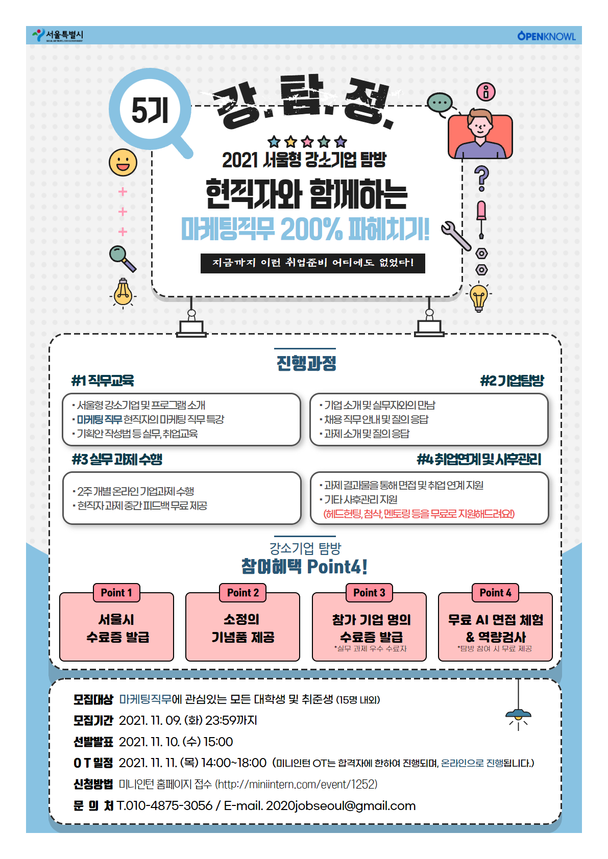 청년취업사관학교 금천캠퍼스 새싹DT 과정을 모집합니다! 새싹DT 과정이란?(Digital Transformation/디지털전환과정) 서비스 기획, UI/UX 디자인, 퍼블리싱, 디지털 마케팅 등 개발자와의 협업 능력이 필수적이고 요구되는 주요 비개발 직무로 취업을 희망하는 청년들이 디지털 전환 역량을 갖춘 실무형 인재로 성장할 수 있도록 지원하는 교육 프로그램입니다. 교육의 특징 ① 기업현장에서 꼭 필요한 직무역량 및 디지털 도구 학습 ② 직무별 실무 프로젝트를 통해 직무경험 습득