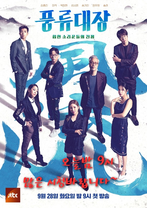J tvc 풍류대장의 첫 방송 김종진, 박정현, 송가인, 우영, 솔라, 성시경 이적진행 전현무, 힙합 소리꾼 무대 풍류대장이 첫 방송부터 무대를 깨무는 달인들이 총출동하는 가운데 심사위원들의 재치 넘치는 티키타카도 예고했다.