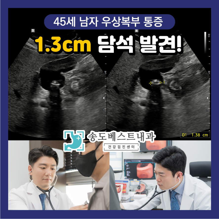 송도 담석 1.3cm 발견 사례 담석 증상의 통증! 인천