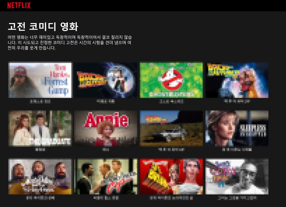 고전 코미디(31694) → 고전 드라마(29809) → 고전 공상과학 및 판타지(47147) → 클래식 스릴러(46588) → 필름 느와르(48744) → 고전 전쟁영화(48744) → 에픽(52858) → 고전 외국영화(32473) → 무성영화(53310) → 클래식 웨스턴(47465)