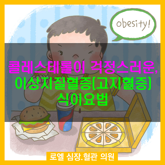 건강 진단에서는 LDL-콜레스테롤, HDL-콜레스테롤, 중성 지방혈증의 수치를 확인할 수 있습니다. 젊은 시절에는 관심도 없던 수치가 나이가 들어 콜레스테롤과 중성지방 수치가 높아져 병원에서 관리를 받아야 한다는 말을 듣습니다. 대사증후군 요인에 해당하는 이상지질이상증은 생활습관병으로 일상에서 운동과 식이요법으로 잘 관리하면 콜레스테롤 수치를 낮출 수 있습니다. 그러나 당뇨병, 고혈압, 심장병, 뇌졸중, 흡연, 조기 관상동맥질환 가족력, 연령(남성 45세 이상, 여성 55세 이상) 등 다른 위험요인을 가지고 있다면 식단만으로 치료가 불가능합니다. 만약 생활 습관을 개선해도 콜레스테롤 수치가 조절되지 않으면 약을 사용합니다. 병원에서 약물처방을 받아 복용하더라도 운동과 식이요법을 병행해야 약물용량을 늘리지 않아 심혈관질환의 합병증을 예방할 수 있습니다. 심장혈관 전문 로엘로 지질이상증(고지혈증) 진단과 식이요법을 알아봅시다.이상지질혈증(고지혈증) 진단