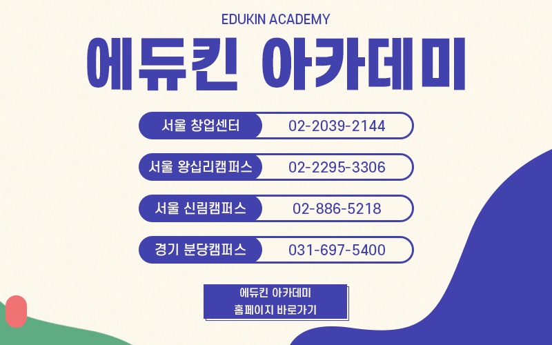 반면 에듀킨아카데미는 전문강사가 직접 케어해주시기에 1:1 밀착지도는 물론 피드백도 아낌없이 해주셨습니다.