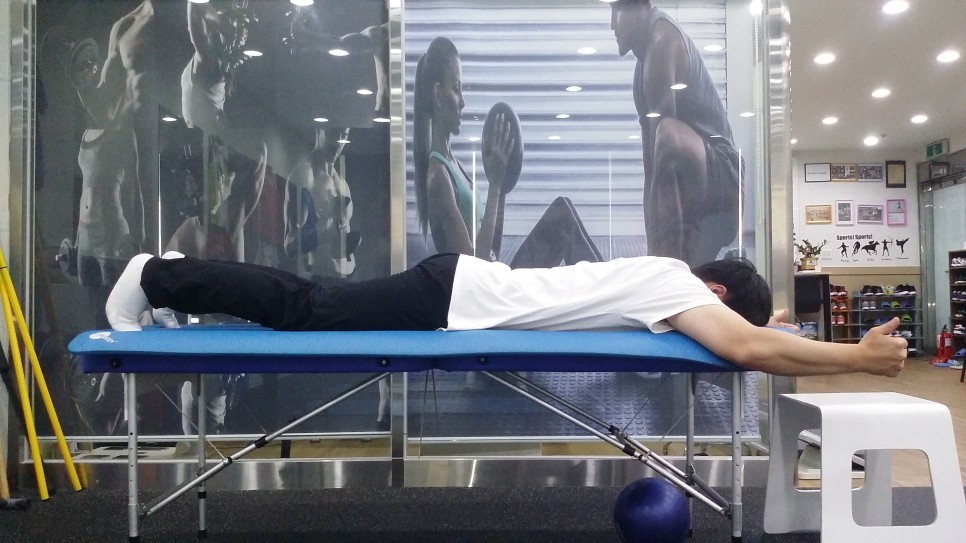 실력이 늘지 않아요.오십견절 구축 개선을 위한 엎드려 T자 운동.6초 12회 3세트다음 운동 방법은 어깨 관절 구축 개선을 위한 엎드린 T자 운동입니다. 딱딱해진 척추와 어깨 관절의 움직임을 개선시키는 목적이 있으며 초기 재활운동 후 상지통합운동 시 적용시킵니다.바닥에 매트를 깔고 엎드린 상태에서 양팔은 옆으로 벌리고 흉요추신 전후 지면에서 천장 방향으로 팔을 들어올려 일정 시간 유지 후 이완하는 동작을 반복하여 진행합니다. 주의사항으로는 척추의 움직임이 나와 팔을 들어올릴 수 있으며 팔이 어깨 아래로 내려가지 않도록 주의하면서 반복적으로 실시합니다.