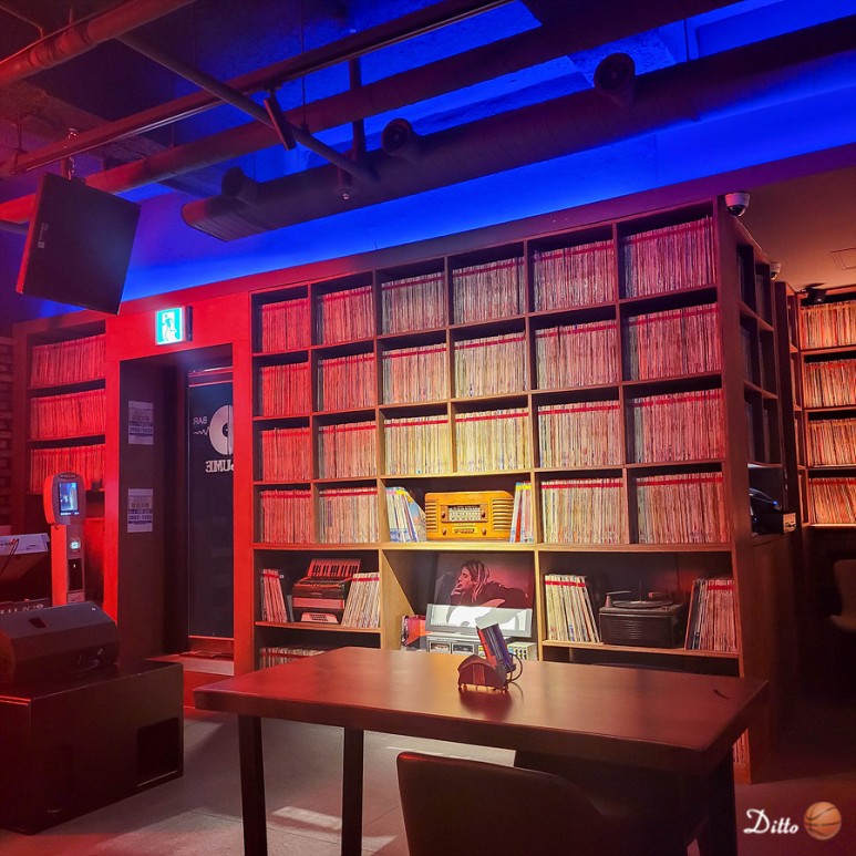 벽 한쪽은 LP판으로 가득 차 있었다.바 테이블 뒤에도 꽉 찬 LP