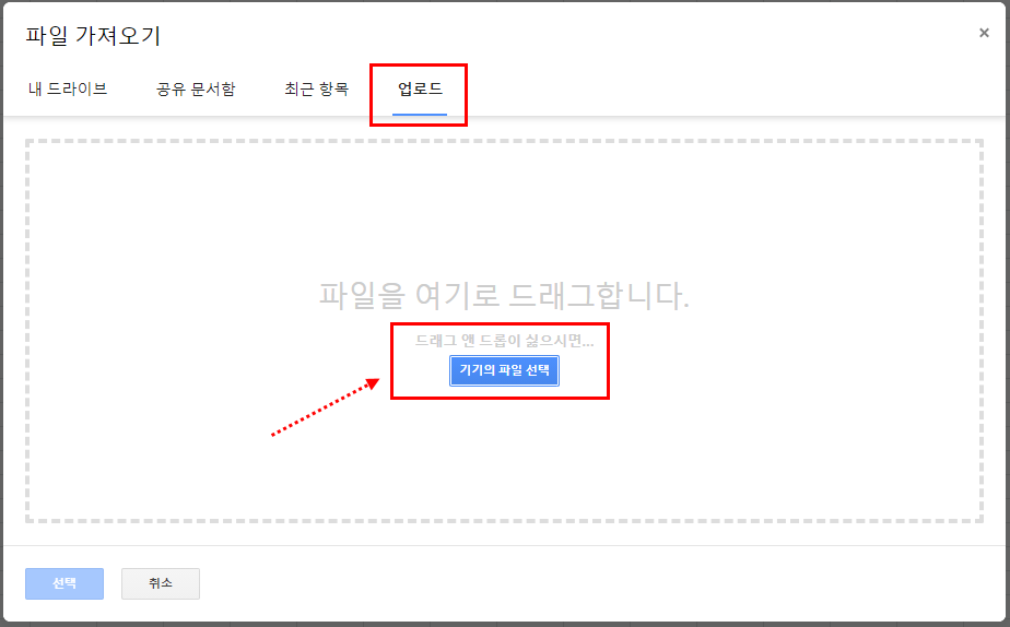 2. 업로드를 선택한 후 PC내에 저장된 파일을 선택하여 엑셀 파일을 등록한다.
